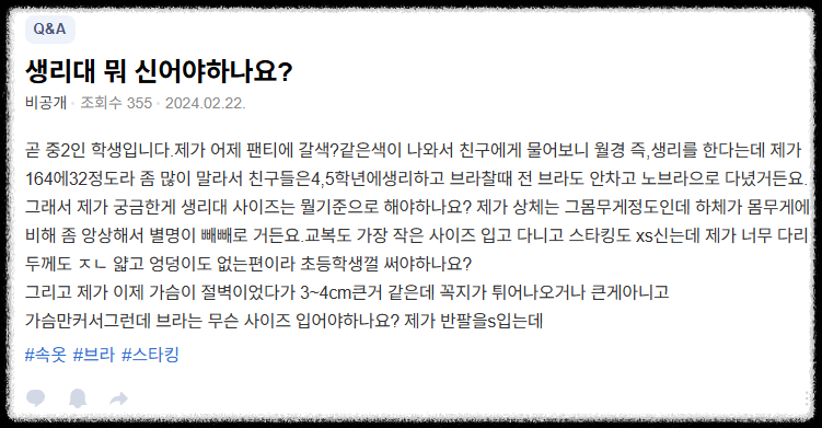| 면 생리대 | 세탁해서 여러 번 사용. | 피부 민감하거나 친환경 용품에 관심 있을 때 |